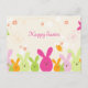 Diese niedliche Osterpost-Karte hat einen cremefarbenen Polka-Punkte-Hintergrund mit vielen weichen Orange- und Weiß-Blume. Oben fliegen ein paar Schmetterlinge. Am unteren Ende des Raumes stehen einige niedliche, helle Köpfe, die hell in Rosa, Grün und Orange gehalten sind. Der glückliche Ostern ist nach oben geschrieben. Auf der Rückseite ist das gleiche cremefarbene Punkte. Es wird leer verlassen, ohne dass eine Nachricht verschickt wird, sodass Sie es auf der Zuhause schreiben oder selbst anpassen können, bevor Sie kaufen.