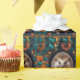Dieses Verpackungspapier zeichnet sich durch einen hübschen Igel aus, der inmitten einer üppigen, lebendigen Blumenlandschaft eingebettet ist. Das aufwändige Design präsentiert eine Mischung aus aquamarinen, orangefarbenen und goldenen Farbtönen, zarter Blume und harmonischem Blattwerk. Dieses Papier ist perfekt für Naturliebhaber und Liebhaber von bezaubernden Waldkreaturen geeignet und verleiht jedem Geschenk eine skurrile und elegante Touch.