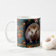 Die Tasse besticht durch einen zauberhaften Igel inmitten einer üppigen und lebendigen Blumenlandschaft. Das aufwändige Design präsentiert eine Mischung aus aquamarinen, orangefarbenen und goldenen Farbtönen, zarter Blume und harmonischem Blattwerk. Diese Tasse ist perfekt für Naturliebhaber und diejenigen, die bezaubernde Waldkreaturen lieben. Sie verleiht jedem Geschenk eine charmante und elegante Touch.