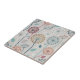 Dandelion Pattern Keramik Tile - Ein charmantes, nahtloses Muster mit skurrilen, stilisierten Blume und aufwändigen Köpfen aus Kronleuchter, gepaart mit abstrakten botanischen Details. Die gedämpfte Farbpalette aus Blues, Tees, Gelb, Rot, Orange und Weiß auf einem weichen, grau-blauen Hintergrund schafft ein beruhigendes, harmonisches Aussehen.