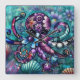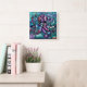 Whimsischer Octopus Floral Aquamarine Lila blaue K Quadratische Wanduhr