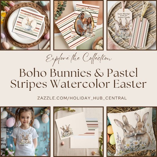 Boho Bunnies & Pastel Stripes Watercolor EasterDesignt von Paola Garcia Broeders