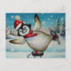 Whimsischer Pinguin Ice Skaten Wasserfarben Kunst, Postkarte