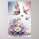Tauchen Sie ein in die ruhige und bezaubernde Welt in unserem Wandposter, wo ein herrlich großer Schmetterling, mit fein weißgetünchten Mustern in sanften Farbtönen wie Rosa, Lavendel, Himmelblau und Blassgelb verziert, anmutig erhellt auf einer außergewöhnlichen Blüte. Set gegen eine weiche, weiße Leinwand, zeigt dieses Kunstwerk Blume mit elegant konturierten Blütenblättern, die ein schwaches, mystisches Glühen ausstrahlen, umgeben von einem Sprinkle aus Glitzern und winzigen, magischen Lebewesen, die seinen märchenhaften Reiz verstärken. Die Aquarelltechnik verbindet meisterlich Farben und schafft einen zarten, traumhaften Effekt, der seinen skurrilen Charme erhöht. Dieses Plakat eignet sich perfekt als Geschenk für 10-jährige Mädels oder für die Verzierung des Kinderzimmers eines kleinen Mädchens und lädt die Zuschauer in ein friedliches, magisches Reich ein. Entdecken Sie dieses einzigartige Werk, das exklusiv bei Do Tell A Belle auf Zazzle erhältlich ist, und ließ es, jeden jungen Träumer in einen bezaubernden Hafen zu verwandeln.
