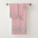 Whimsischer Silber-Glitzer auf rosa Blush Monogram Badhandtuch Set