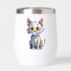 Dieser Weinkeller zeigt eine skurrile Aquarellbilder einer mit Augen, schmutzigen kleinen Katze. Entsprechende, eigenwillige und schelhafte Teile des Designs zeichnen die unvorhersehbare Persönlichkeit aus, die Katzen so unwiderstehlich macht - sie lieben es, einen Augenblick zu lieben und den nächsten zu entzücken.