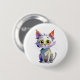 Dieser Knopf zeigt eine skurrile Aquarellbilder einer mit Augen, rauschigen Katze. Entsprechende, eigenwillige und schelhafte Teile des Designs zeichnen die unvorhersehbare Persönlichkeit aus, die Katzen so unwiderstehlich macht - sie lieben es, einen Augenblick zu lieben und den nächsten zu entzücken.