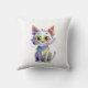 Dieses Kissen zeigt eine skurrile Aquarellillustrierung einer mit Augen, rauschigen kleinen Katze. Entsprechende, eigenwillige und schelhafte Teile des Designs zeichnen die unvorhersehbare Persönlichkeit aus, die Katzen so unwiderstehlich macht - sie lieben es, einen Augenblick zu lieben und den nächsten zu entzücken.