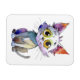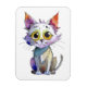 Dieser 3-Zoll x 4-Zoll-Magnet zeigt eine skurrile Aquarelldarstellung einer mit Augen, rauschigen Katze. Entsprechende, eigenwillige und schelhafte Teile des Designs zeichnen die unvorhersehbare Persönlichkeit aus, die Katzen so unwiderstehlich macht - sie lieben es, einen Augenblick zu lieben und den nächsten zu entzücken.