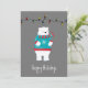 Whimsikale Polarbärillustrierung mit farbigem Pullover und Schal, einer Reihe von Urlaubslichtern und anpassbarem Text "Happy Holidays"