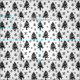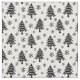 Dieser schöne, schwarz-weiße Weihnachtsstoff zeichnet sich durch einen skurrilen Weihnachtsbaum und ein Schneeflockenmuster aus.
