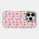 Niedliche rosa und grüne Hand gezeichnet skurrile Weihnachtsmuster iPhone Gehäuse. Dieses lustige Urlaubsdesign zeigt Strümpfe, Geschenke und Grünpflanzen auf hellrosa Hintergrund.