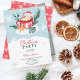 Eine moderne, niedliche und skurrile Party Einladung mit einem niedlichen schwimmenden Schneemann in einer heißen Tasse Schokolade mit einem rot-weißen Bonbon mit einem weißen und roten Weihnachtsbäumen und Schnee auf der Tasse mit einem blau niedlichen Geschenk auf einem Schneehaufen mit einem beigen Keksgoldstern. Ein traditionelles Weihnachtsfest in Rot und Grün lädt mit einem spielerisch gebürsteten Script-Schriftart zum Verweilen ein. Alle Farben sind bearbeitbar.