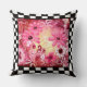Whimsisches Abstraktes Blumenrosa Roter Karo Grenz Kissen