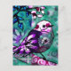 Whimsisches Abstraktes Vogelfloral Aquamarin Lila Postkarte