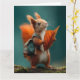 Whimsisches Eichhörnchen mit Rucksack und Herbstle Karte