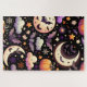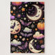 Ein magischer Halloween-Abend entfaltet sich in diesem skurrilen Muster, gefüllt mit glühenden Halbmonden, spielerischen Fledermäusen und strahlenden Sternen Set gegen einen tiefen schwarzen Himmel. Helle orangefarbene Kürbisse, wirbelnde Wolken in lila und grauen Farbtönen und zarte Spinnennetze bilden eine lebendige, aber bezaubernde Szene. Das Design verbindet den strahlenden Charme mit einem traumhaften Storybook-Gefühl, das sich perfekt für festliche Herbstabende und fantasievolle saisonale Laune eignet. AI generierte Kunstwerke.