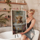 Mit diesem bezaubernden Kunstprint mit einer Kuh im Hochland, die in einem Vintagen Kalkfußwanne ein entspannendes Schaumbad genießt, verleihen Sie den Wänden ein Plätzchen Leichtigkeit. Umgeben von floralen Tapeten, fröhlichen Blüten und trendigen Blasen verbindet diese spielerische Szene den Charme eines Bauernhauses mit gemütlichen Sitzecken. Ideal für die Badezimmerdekoration, die Zuhause im Bauernhaus oder als humorvolles Geschenk für Kuhliebhaber, bringt dieser Aufdruck Lächeln und Stil in jeden Raum.