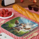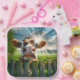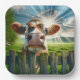 Whimsisches Kuh-Peering über Zaun Pappteller