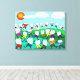 Whimsical Dental Art Wrapped Canvas, "Happy Teeth". Künstler zeichnete mehrere Zähne in kleinen Pullover, Hosen und Schuhe gekleidet und schaukeln auf einem sonnigen Hang. Zähne sind glücklich, weil sie gesund sind. Perfektes Geschenk für Zahnärzte und Zahnarztbüros.
