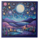 Keramik Fliesen mit einer schönen Abbildung. Whimsical und fantasievoll vibe. Ein großer leuchtender Mond mit Sternen überall. Hängend über eine schöne Landschaft von Bäumen, Bergen und einem gewundenen Fluss. Phantastisches magisches mystisches Flair.