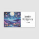 Name Tag mit einer schönen Abbildung. Whimsical und fantasievoll vibe. Ein großer leuchtender Mond mit Sternen überall. Hängend über eine schöne Landschaft von Bäumen, Bergen und einem gewundenen Fluss. Phantastisches magisches mystisches Flair.