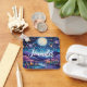 Personalisierter Schlüsselanhänger mit einer schönen Abbildung. Whimsical und fantasievoll vibe. Ein großer leuchtender Mond mit Sternen überall. Hängend über eine schöne Landschaft von Bäumen, Bergen und einem gewundenen Fluss. Phantastisches magisches mystisches Flair.