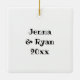 Personalisierte Weihnachtsschmuck für Paare. Romantisches Sake-Geschenk. Geben Sie Namen und Jahr in den personalisierenden Bereich ein. Junge und Mädchen in der Liebe sitzen in einer Reihe von Vintagen Pilzen und Blume mit Schmetterlingen im Hintergrund.