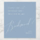 Einführung in unser atemberaubendes whimsical-Skript | staubige blaue Bridesmaid Weinkarte perfekt für Ihre einfache moderne boho Frühlingsfeier. Unser elegantes Design umfasst eine lebendige, helle, pastellfarbene Farbpalette mit einem Vintagen, schicken Kalligraphieskript. Ob Sie einen minimalistischen oder klassischen Stil bevorzugen, unser einzigartiges, bearbeitbares Produkt bietet Luxus und Eleganz, perfekt um eine stilvolle und romantische Touch zu schaffen, die Ihren besonderen Tag unvergesslich macht. Kontaktieren Sie uns mit Fragen über das Design, und lass uns helfen Ihnen, die Hochzeit Ihrer Träume.
