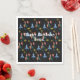 Whimsical Spring Mod benutzerdefinierte Hintergrundfarbe.Personalisierte Servietten, leicht hinzufügen Namen auf ihnen. Aquarellblau und roter Zwerg, whimsikale Kreatur, Pilz, Blume, Sonne.