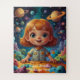 Entdecken Sie die Wunder des Raumes mit diesem pulsierenden, skurrilen Kinderpuzzle mit spielerischen Planeten und einem eigenartigen Charakter, das für Kinder aller Altersgruppen Fantasie und Spaß inspiriere. Das Kunstwerk ist voll von lebhaften, gesättigten Farben, die Kinder anziehen. Im Hintergrund befindet sich eine sternförmige, kosmische Szene mit Planeten, Sternen und anderen Himmelsobjekten, die ihr einen Raum oder eine Fantasiewelt der Science Fiction verleiht. Dieses Thema ist perfekt, um die Neugier eines Kindes zu wecken. Charaktergestaltung: Die zentrale Figur ist ein Kind mit übertriebenen Merkmalen, mit großen Augen und einem runden Gesicht, das dem Charakter ein Gefühl von Unschuld und Wunder verleiht. Der Ausdruck ist fröhlich und verleiht dem hellen Ambiente noch mehr. Die Figur ist herzlich und einladend und hilft jungen Kindern, sich emotional mit dem Bild zu verbinden. Puzzle-ähnliche Umgebung: Der Charakter scheint mit einem Puzzle zu interagieren, das wunderbar mit der Idee passt, dieses Bild in ein Kinderpuzzle zu verwandeln. Die Stücke auf dem Tisch wirken abstrakt, farbenfroh und lustig, ähnlich kosmischen oder anderen weltlichen Formen, was eine Ebene kreativen Denkens hinzufügt. Fantasy Elements: Der Weltraum, gepaart mit der fantasievollen Umgebung des Charakters, macht dies zu einer exzellenten Wahl für ein Kinderpuzzle zum Thema Fantasie. Planeten, Sterne und seltsame Alien-ähnliche Objekte schaffen eine traurige und andere Weltanschauung. Appeal for Educational Toys: Diese Art des Designs funktioniert gut bei Rätseln, die auf frühes Lernen oder kognitive Entwicklung abzielen, da sie Kreativität, Erforschung und räumliches Bewusstsein bei Kindern fördert. Das Bild verwendet weiche, abgerundete Formen und helle Farben, um sich näherzukommen und Spaß zu haben. Sie können es auch mit einer liebevollen Nachricht personalisieren.