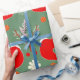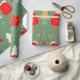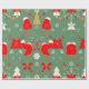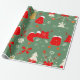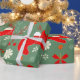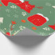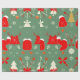Ein spielerisches Urlaubsmuster mit roten Strümpfen, Weihnachtsbäumen, goldenen Ornamenten, Bögen und Schneeflocken auf grünem Hintergrund. Dieses skurrile Design verbindet festlichen Charme mit einem gemütlichen Urlaubsatmotiv und eignet sich ideal für Papierverpackungen, saisonale Dekorationen oder Kunsthandwerksprojekte. Die leuchtend rote und grüne Farbpalette spiegelt den Weihnachtsgeist wider und verleiht jeder Feier und jedem kreativen Einsatz eine fröhliche und dekorative Touch.