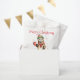 Diese reizvolle Weihnachtsgeschenktasche ist mit einem stehenden Otter aufrecht, gekleidet in einem festlich rot-grünen gestreiften Hut mit einem flauschigen Pom und einem gemütlichen roten Schal mit weißem Rand versehen. Der Otter hat eine rote Tasse mit einem weißen Schneeflocken-Design, gefüllt mit einem picknickcremefarbenen Getränk. Über dem Otter wird das Gruß "Frohe Weihnachten" in kühnen, stilisierten Schriften auf einem sauberen, weißen Hintergrund dargestellt. Der Text ist vollständig anpassbar, sodass Sie die Nachricht personalisieren können, um jegliche Gefühle Anzug. Weiche Aquarellbilder in Blues und Grüntönen fügen dem Hintergrund eine künstlerische Touch hinzu und schaffen eine einladende und einladende Urlaubsszene, die perfekt zum Versenden der Jahresgrüße geeignet ist.