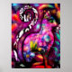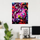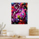 Whimsisisches Abstrakt Kitty Cat Floral Rot Rosa Poster