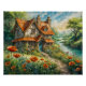 Whimsistische Hütte mit Mohn-Blume Poster