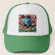 Whimsistischer Impressionist Floral Frog Green Blu Truckerkappe