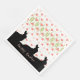Leider ist beim Bestellvorgang nicht die Größe angegeben, zumindest habe ich es nicht gesehen. Der Name "Duschen"-Servietten ist etwas seltsam :-) Aber man kann aus verschiedenen Designs auswählen und es sieht ganz nett aus. Ich würde mir aber noch viel mehr verschiedene Farben und Muster wünschen! Insgesamt eine nette Idee für ein personalisiertes Accessoire zu allen möglichen Feiern. Der Druck ist OK, er ist nur ganz leicht unscharf.