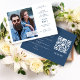 This card combines modern calligraphic and traditional fonts, creating a perfect blend of contemporary and timeless elements. The front features a clean white background, while the back showcases a soft color reminiscent of washed jeans. With a photo and a QR code, this card offers a sophisticated and practical way to share your wedding details. Embrace love and diversity with a design that welcomes all couples, regardless of their background or orientation. You can personalize these 'Save the Date' cards according to your preferences.