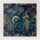 Trendy, magische goldene Träumerei mandala Blumenmuster, mit einer Sammlung von Stammesfedern, mandalanische Blume, geometrische Blume, der Mond, die Sonne und die Sterne, Kreise, Punkte, Quadrate, Dreiecke, Zickzack zigzag, geometrische Formen, eine Mandala mit einem Schutzauge, mit gelben Gold-und silbernen Punkten leuchtend Glitzer Glitzern, über einen dunkelblauen, dunkelblauen Farbverlauf mit leuchtendem Hintergrund. Diese trendige, mystische, tribale, modische, fantasievolle Illustration, böhmisches mädchenisches Design, ist perfekt für den täglichen Gebrauch, die Wohngestaltung, Feiern und besondere Tage Thema Dekoration.