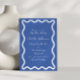 Whimsy Script Blue Scribble Border Baby Dusche Einladung