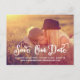 Rustikales Foto Save the Date Postcard mit Ihrem Foto auf der Vorder- und Rückseite. Elke Clarke© Whimsical, trendige Typografie White Script Overlay Design Save the Date Verlobung Ankündigungen können Sie personalisieren. Für mehr Stil besuchen Sie unseren Shop unter www.zazzle.com/epclarke.