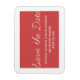 Whimsy Speichern Sie das Date Magnet in rot und weiß mit einem einfachen und lustigen Skripttypografie-Design. Diese trendy speichern Sie den Datums-Magnet ist einfach, um Ihre Hochzeitsdetails anpassen. Klicken Sie für weitere Anpassungsoptionen auf die Schaltfläche Anpassen.