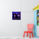 This whimsical poster features two fantasy-themed dolls against a purple starry background. One wears a witch's hat with long black curly hair, while the other has short black spiky hair. Both dolls wear matching purple and black outfits with ornate silver detailing. They have large expressive eyes and pink-tinted complexions. Finished as a mixed media art print.