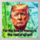 Wer ist sonst noch der Meinung, dass Trump ein weißer, gieriger Verlierer ist? Dieses Design hat ein modernes Bild von Trump vor einem Hintergrund des Geldes.