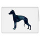 Silhouette mit schwarzer oder indigofarbener Wasserfarbe. Diese Silhouette kann auch Greyhound, Iggy, Italian Greyhound, American Staghund, Caravan, Cretan, Mudhol, Karwani, Pashmi, Pisuri Hound, Petit Levrier Italiane, Piccolo Levriero Italiano, Italienisches Windspiel, Galgo Italiano, Galgo, IG, Polnischer Greyhound, Polski, Coursing Dosing g, Sackhund