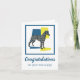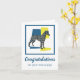 Whippet / Italienische Greyhound Hund Silhouette in gelb blau und schwarz modernen Gitterlinien Muster. Herzlichen Glückwunsch zu Ihrem neuen Welpen draußen und lustige Nachricht innen kann auf alles, was Sie gewollt werden geändert werden.