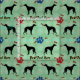 Ein Whippet mit einer Streuung von Knochen und Pfotenspuren. Dieses Design soll nahtlos fliesen.