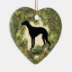 Schwarze Silhouette eines Whippets vor dem Hintergrund eines grünen Weihnachtskranzes, der durch eine Sprinklerei mit roten Beeren aufgeheizt wird.