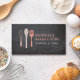 Ein Trio von Küchenutensilien zusammen mit Ihrem Namen oder Firmennamen macht das passende Logo auf dieser individuell gestaltbaren Visitenkarte für Catering, Bäckerei, Restaurant oder jedes Lebensmittelgeschäft. Set auf schwarzem Chalkboard-Hintergrund für ein küchenfreundliches Ambiente. © 1201AM CREATIVE