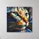 Das Portrait eines wunderschönen Katzenkopfes wird in einem abstrakten Buntglasstil präsentiert. Die Farbtöne Blau, Gelb und Türkis verbinden sich in dieser künstlerischen Komposition, die den felinen Charme in einer faszinierenden und eleganten Darstellung einfangen lässt.
